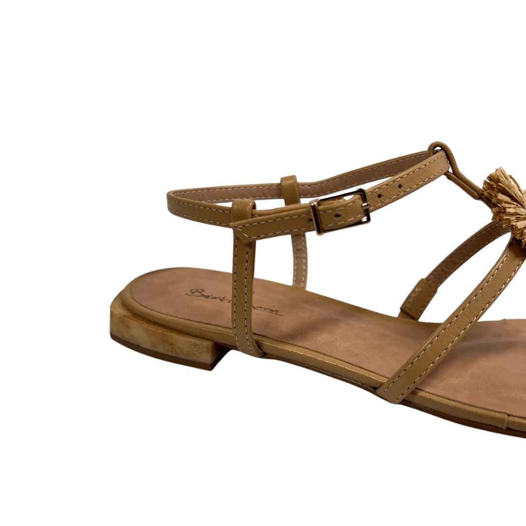 Sandália Rasteira Berti Maria Feminina Ráfia Trigo Couro