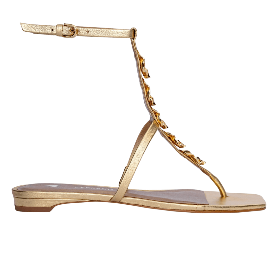 Sandália Rasteira Carrano Feminina Flat Shell Metalizado Dourado Couro