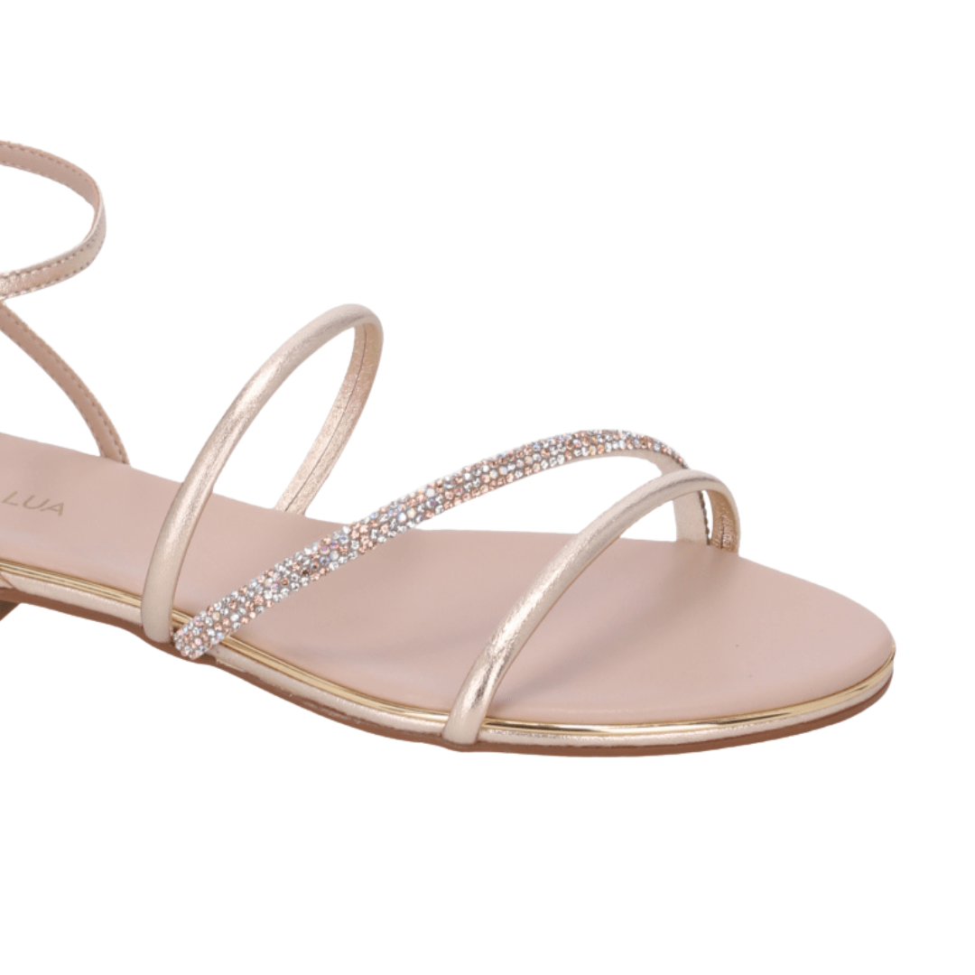 Serve para ocasiões formais? Com certeza! O detalhe em cristal e os metais dourados tornam a sandália perfeita para eventos mais elegantes.