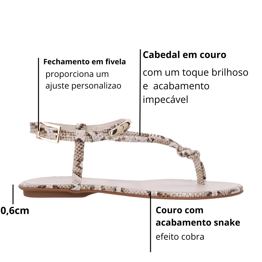 A Sandália Rasteira Luz da Lua Snake Panna é a escolha perfeita para quem busca leveza, elegância e conforto em um único modelo.
