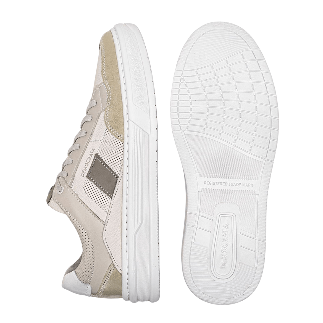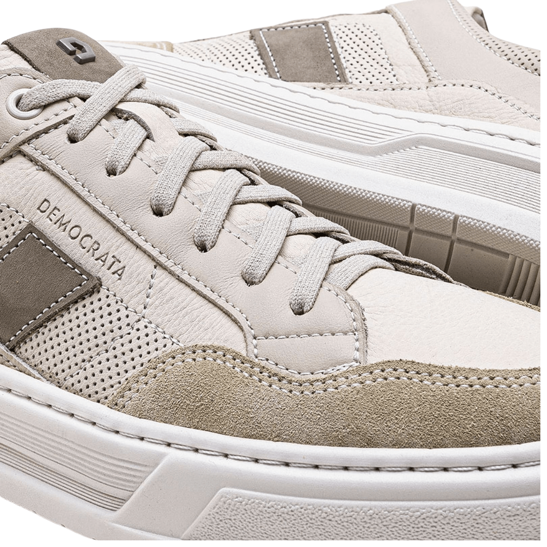 Detalhes: Recortes estratégicos, costuras aparentes e logo Democrata na lateral e língua.