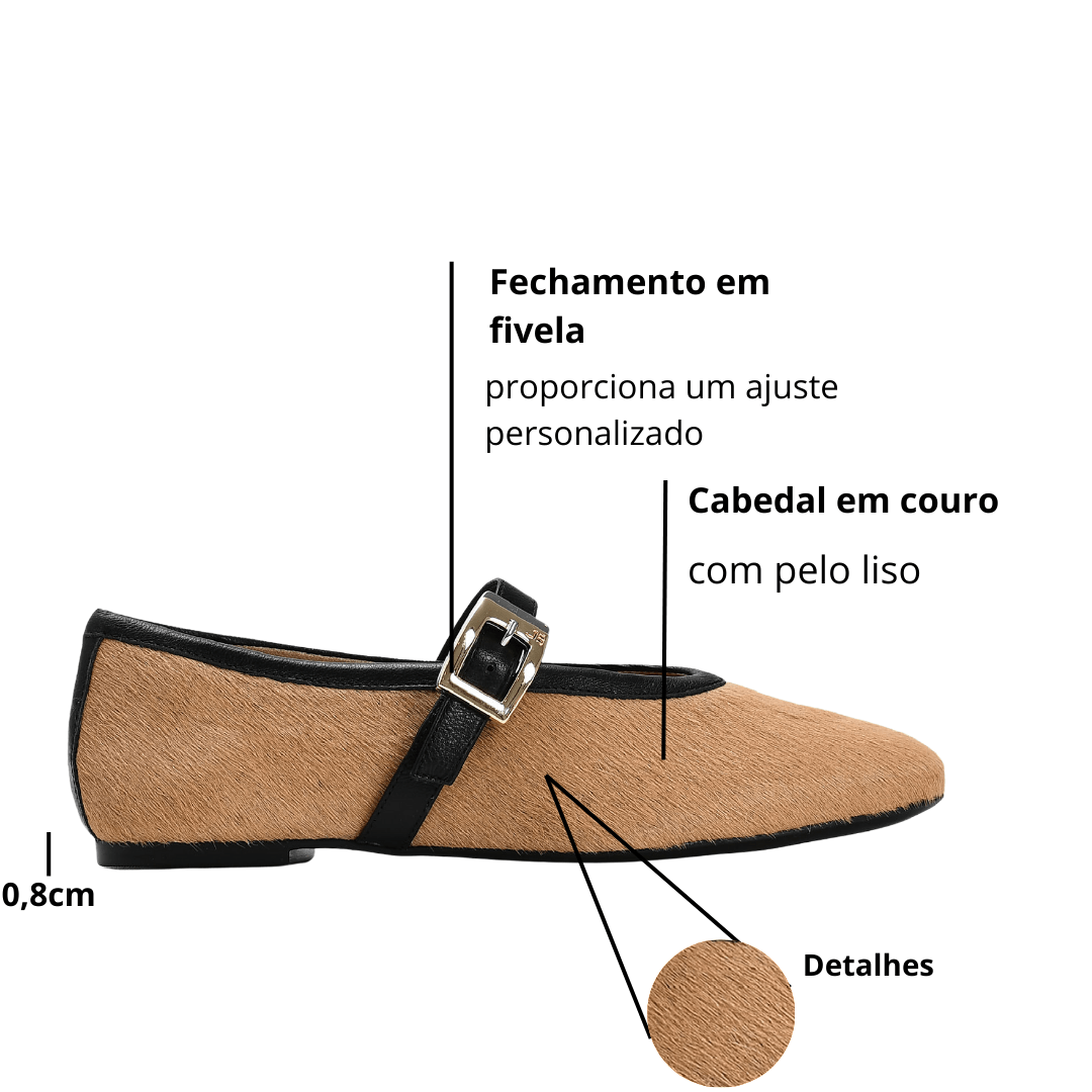 Modelo: Sapatilha Jorge Bischoff Feminina Carvalho Pelo Liso Nude Couro