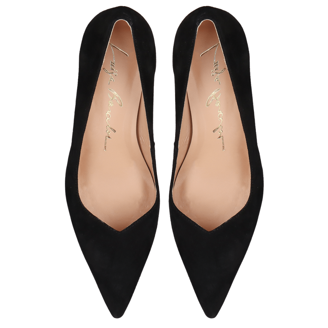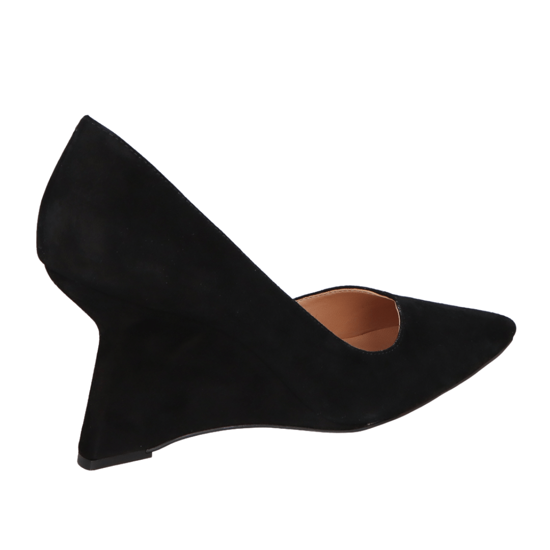 Realce sua elegância com o Scarpin Luiza Barcelos Salto Anabela Preto Couro Camurça.