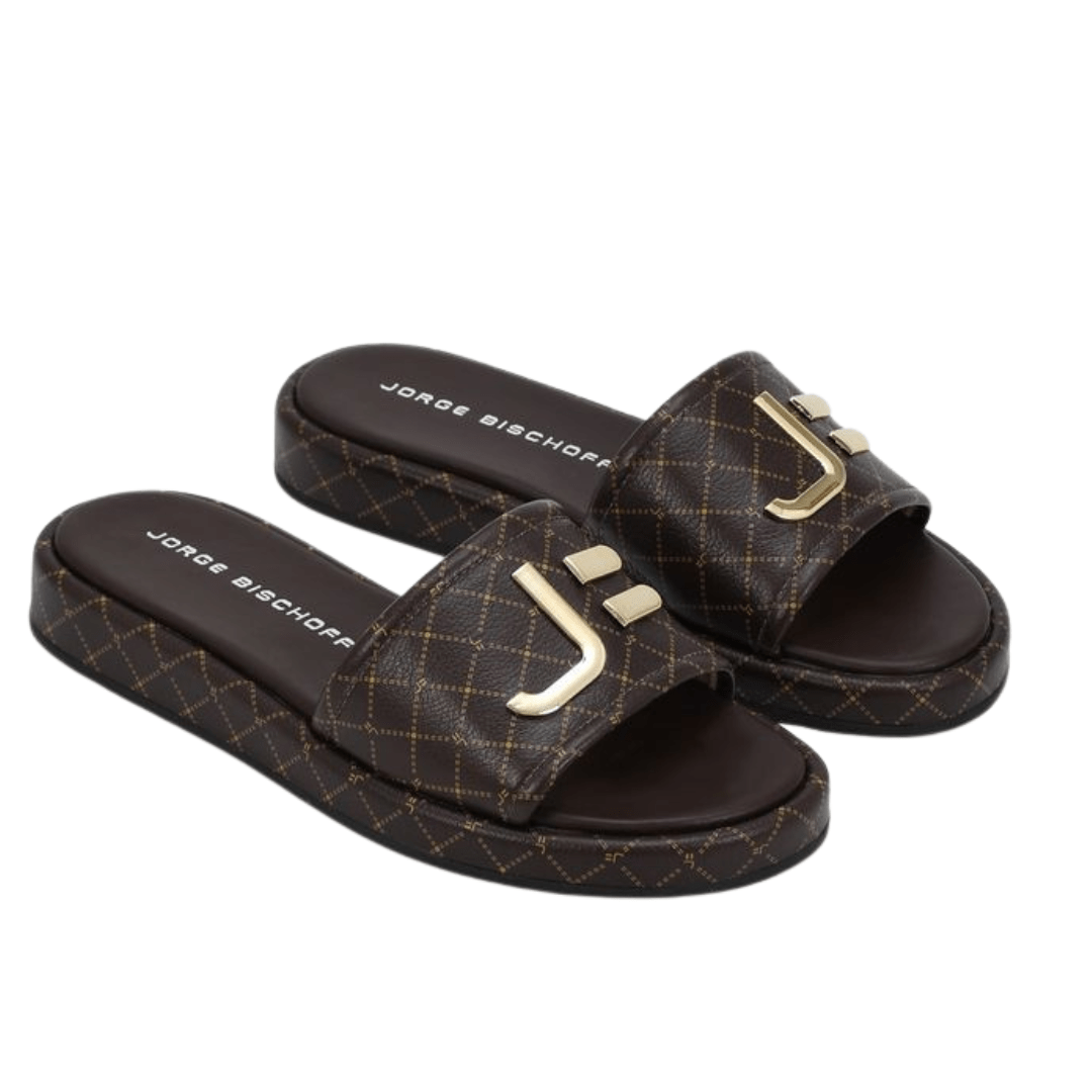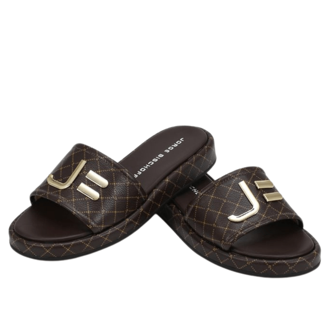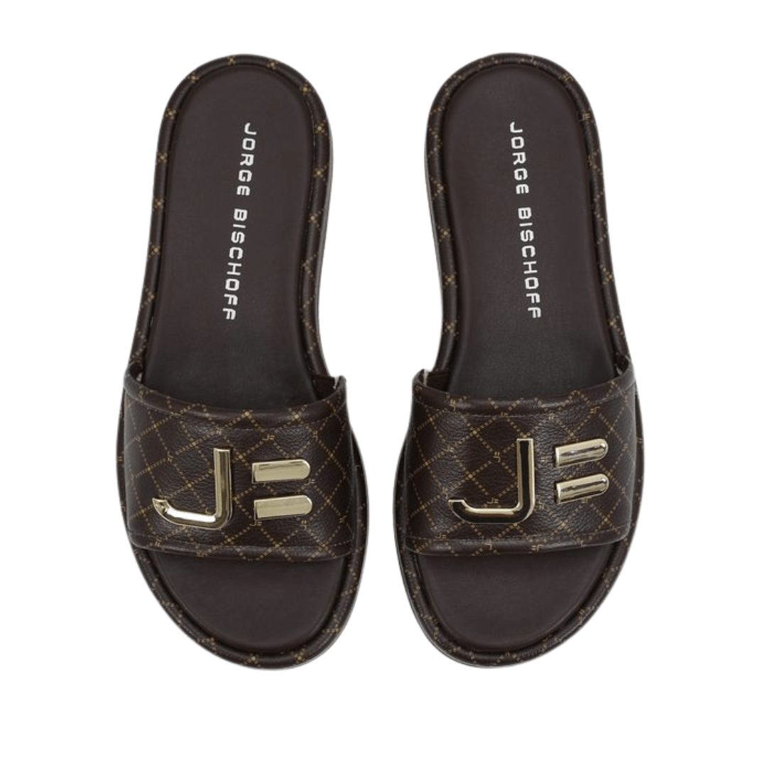 Slide Jorge Bischoff Feminina Marrom Monograma Jb Couro