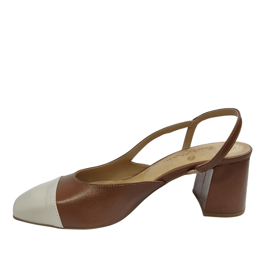 Modelo: Slingback Berti Maria Feminino Gelo Chocolate Couro