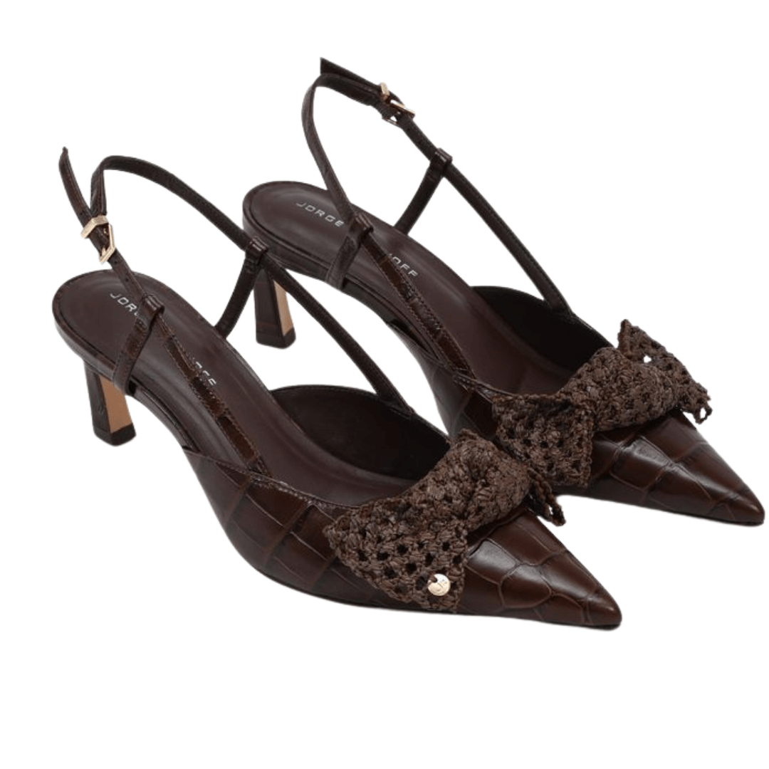 O Slingback Jorge Bischoff Feminina Ráfia Marrom Couro Crocco traduz elegância atemporal com um toque contemporâneo. Feito para mulheres que valorizam design autoral, conforto e detalhes que fazem toda a diferença, esse modelo é perfeito para elevar o estilo em qualquer estação — especialmente no outono e inverno, quando os tons terrosos ganham destaque.