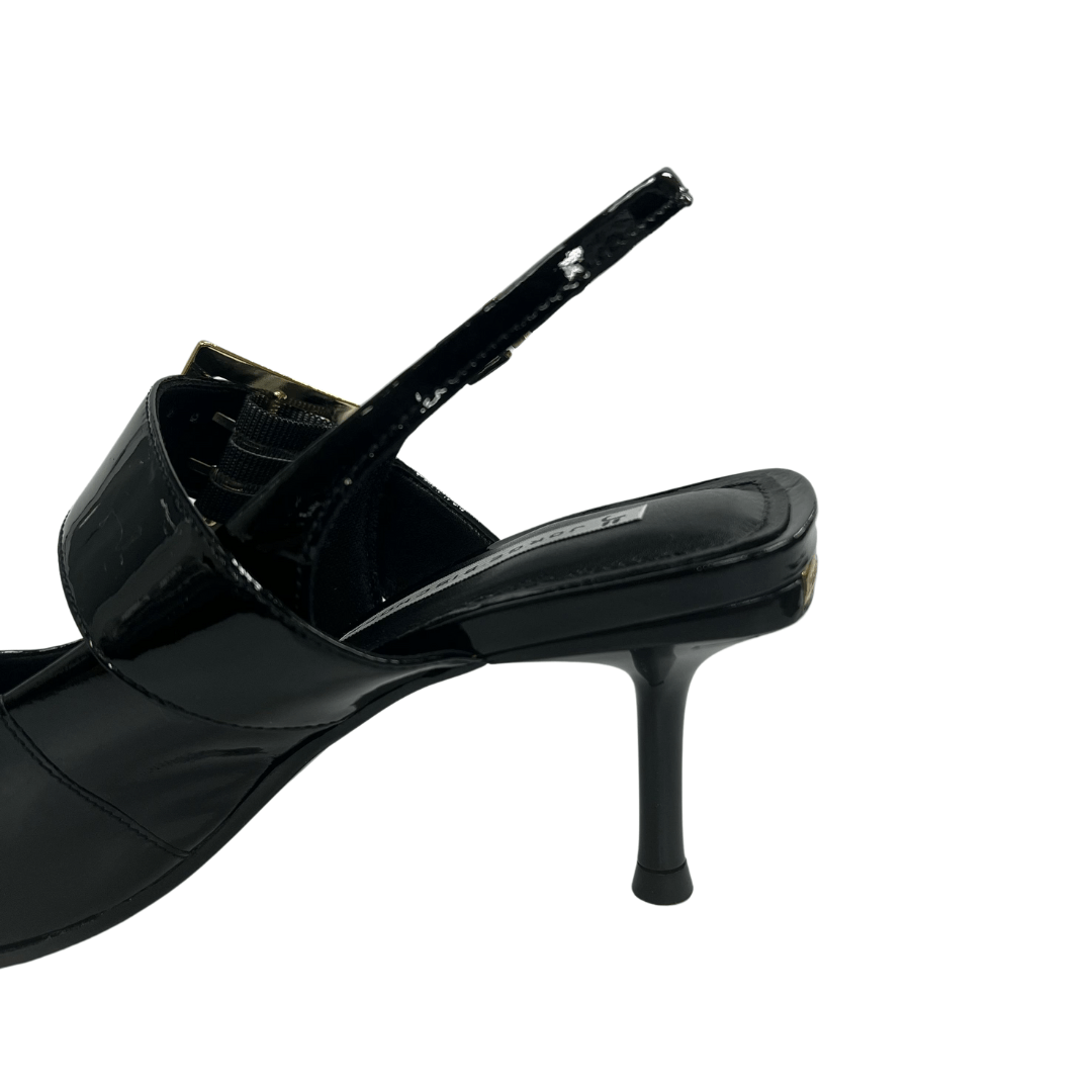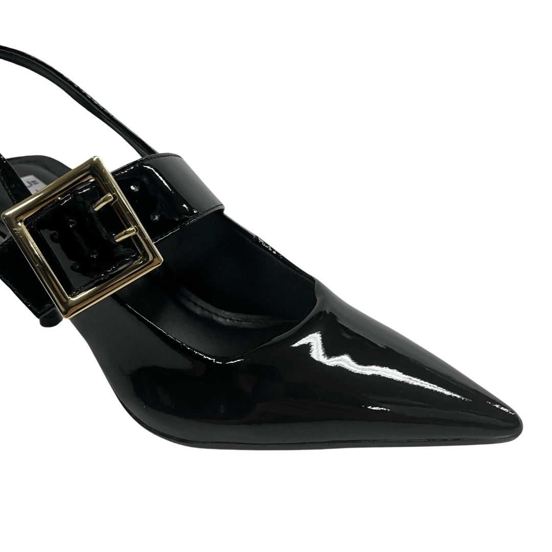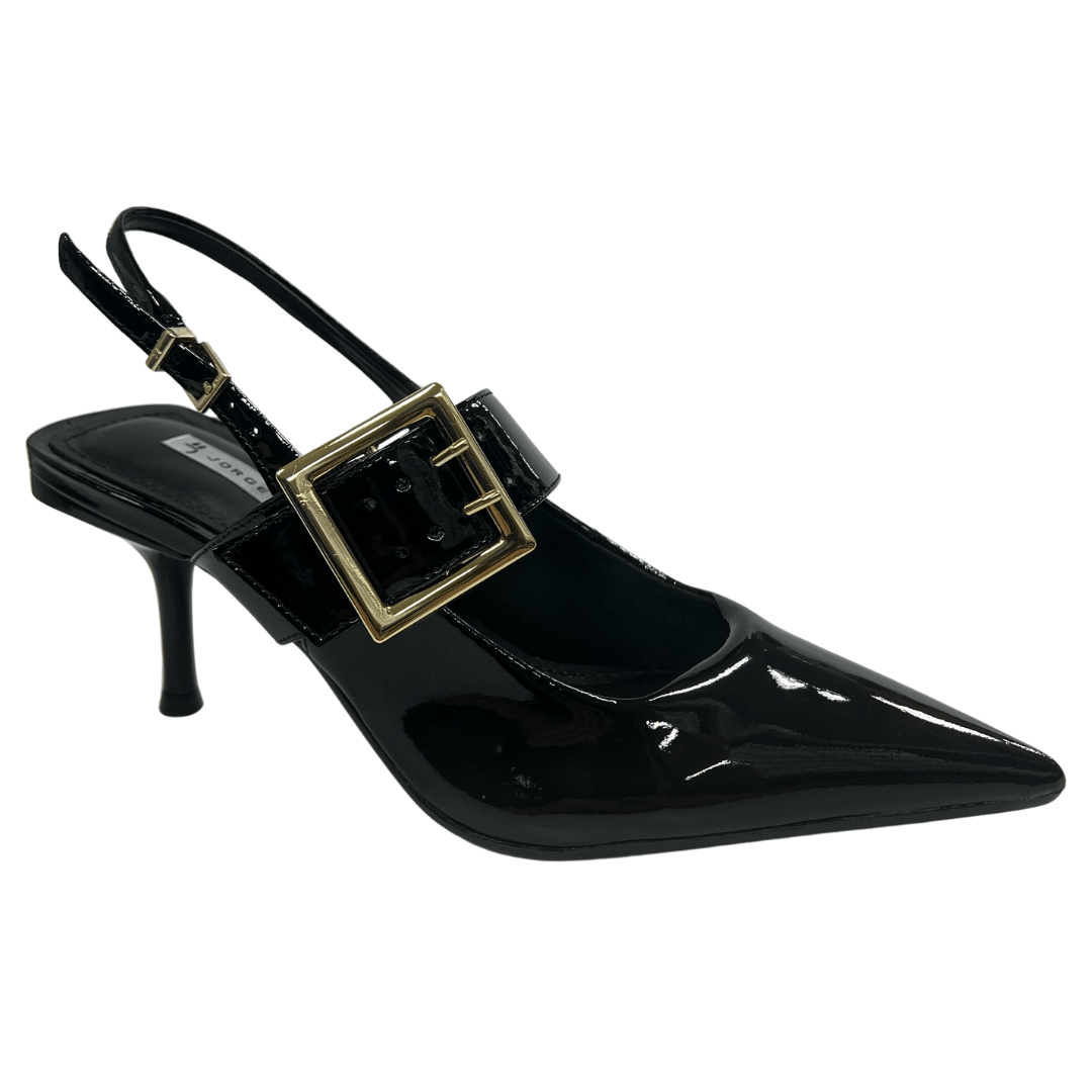 Slingback Jorge Bischoff Feminino Preto Couro Verniz