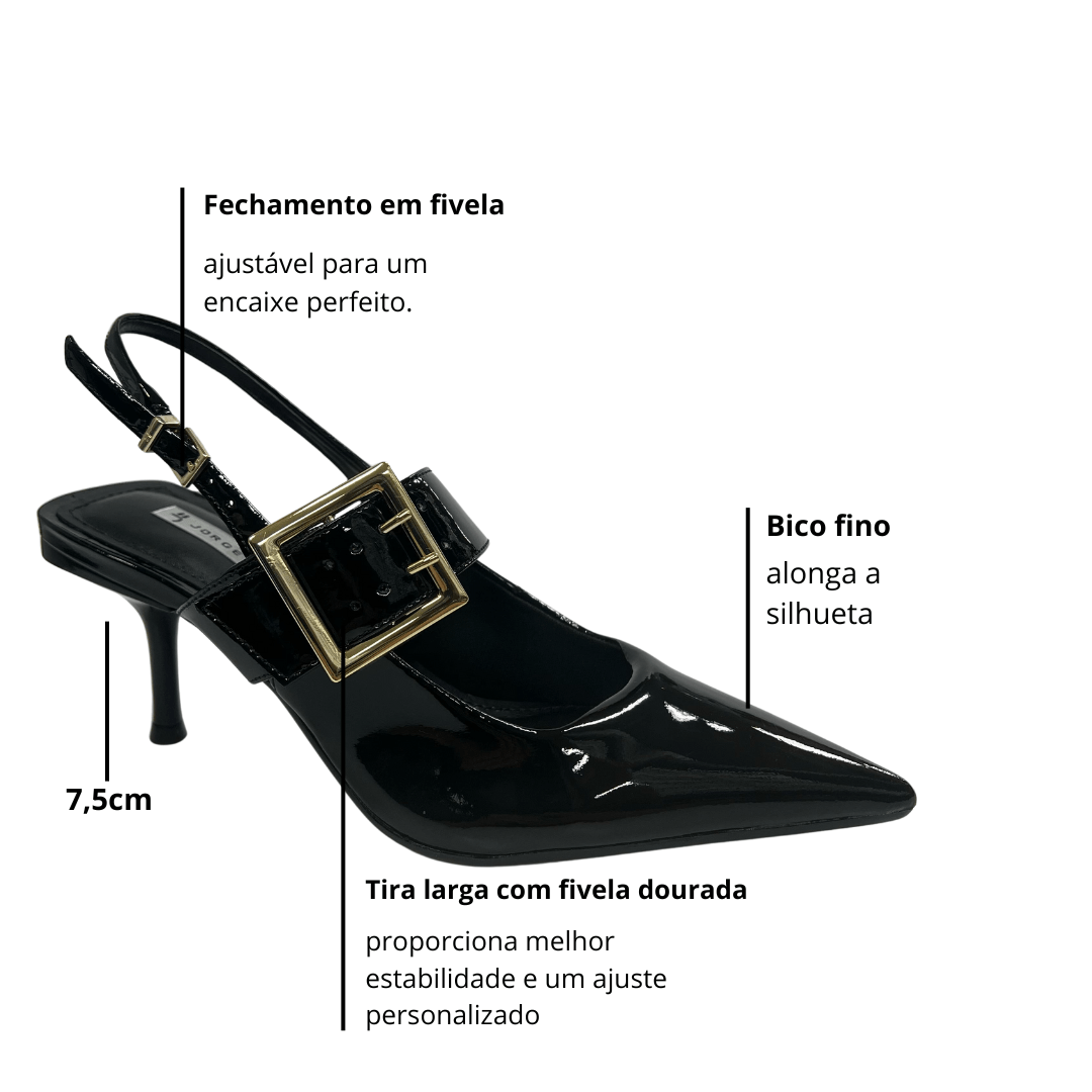 Modelo: Slingback Jorge Bischoff Feminino Preto Couro Verniz