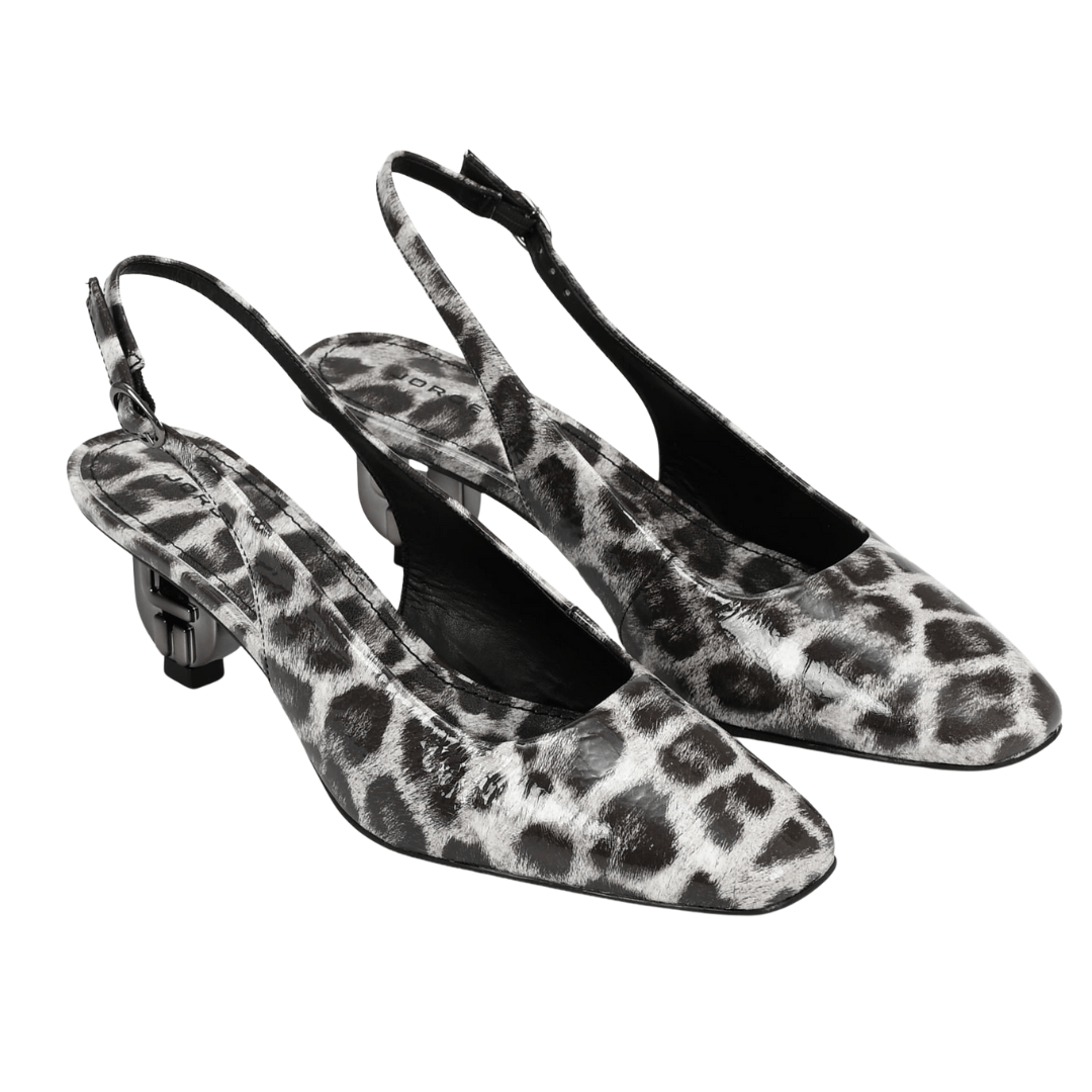 Modelo: Slingback Jorge Bischoff Feminino Salto JB Heel Onça Preto Branco Couro