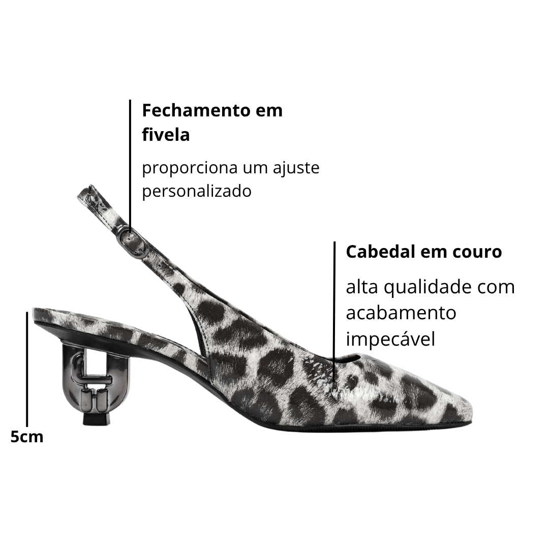 Versátil e cheio de estilo, o Slingback Onça Preto e Branco é ideal para looks de trabalho elegantes e produções casuais com personalidade.