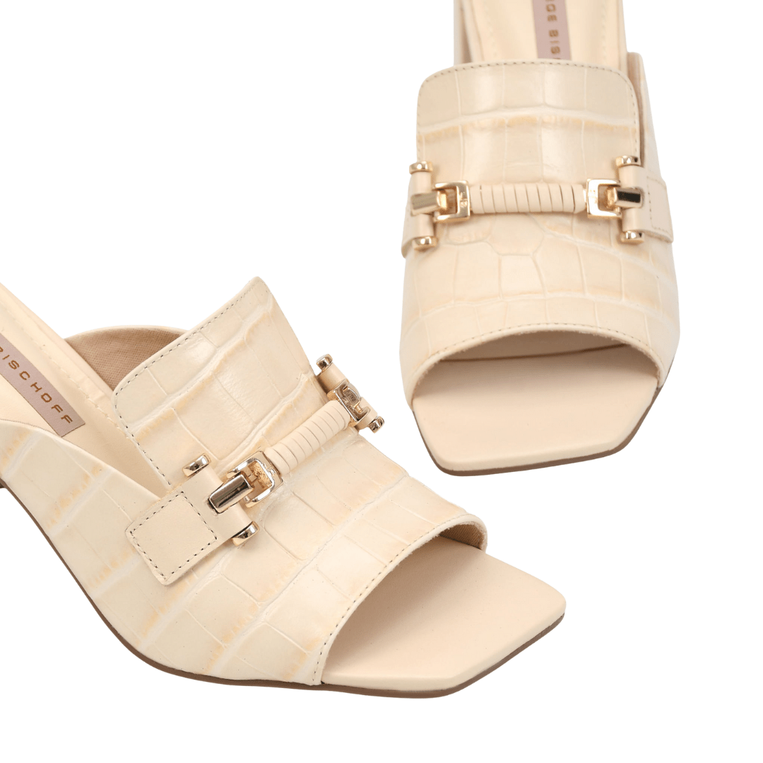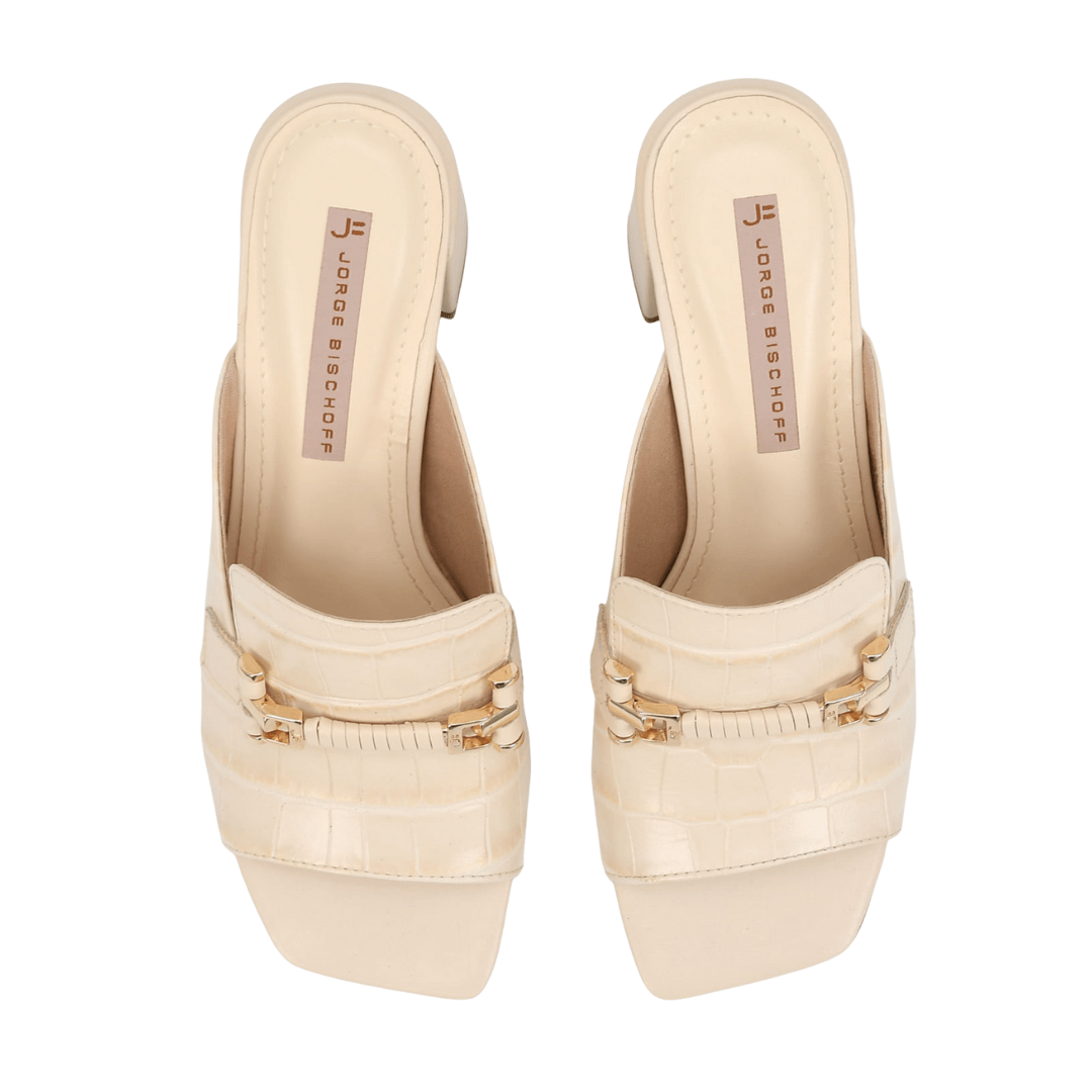 Modelo: Tamanco Jorge Bischoff Salto Bloco Off White Couro Croco