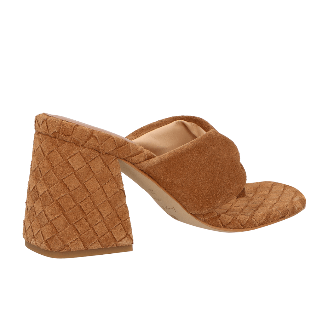 Material refinado: confeccionado em couro camurça no tom caramelo, garantindo textura suave e visual sofisticado.