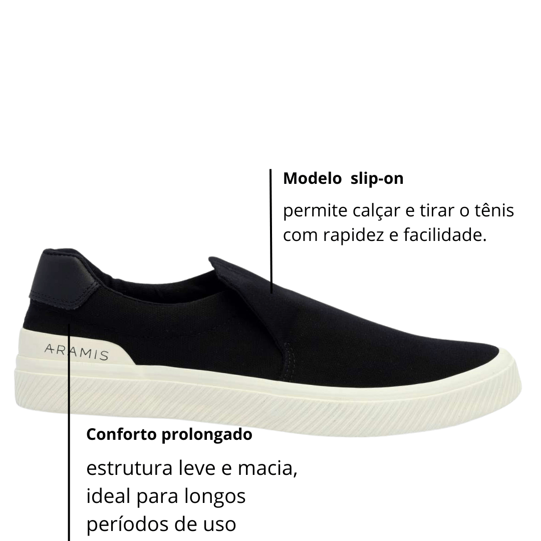 Modelo: Tênis Aramis Masculino Daily Slip Canvas Preto Off White
