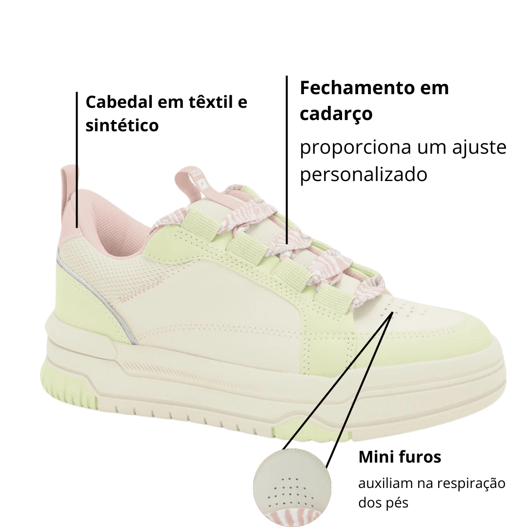 O Tênis Chilli Beans Feminino Sálvia Coconut combina estilo, conforto e inovação em um modelo único.