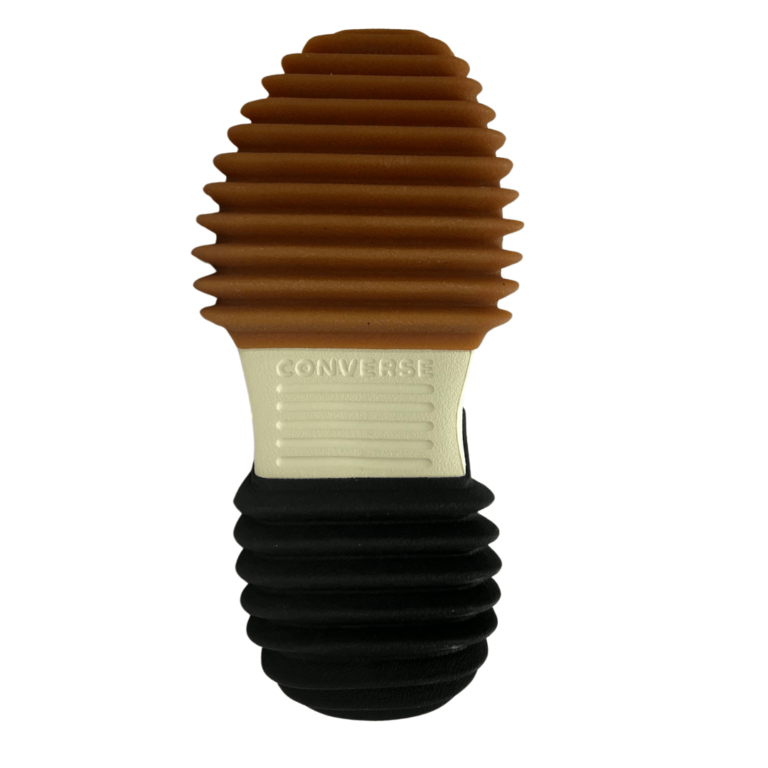 - Detalhes clássicos do Chuck Taylor, como costura, atacadores e ilhós vintage.