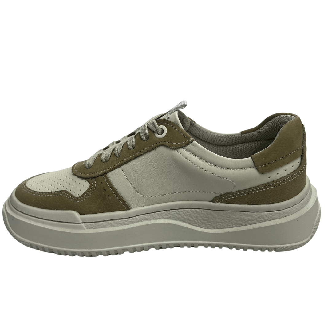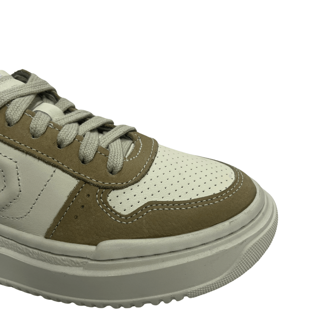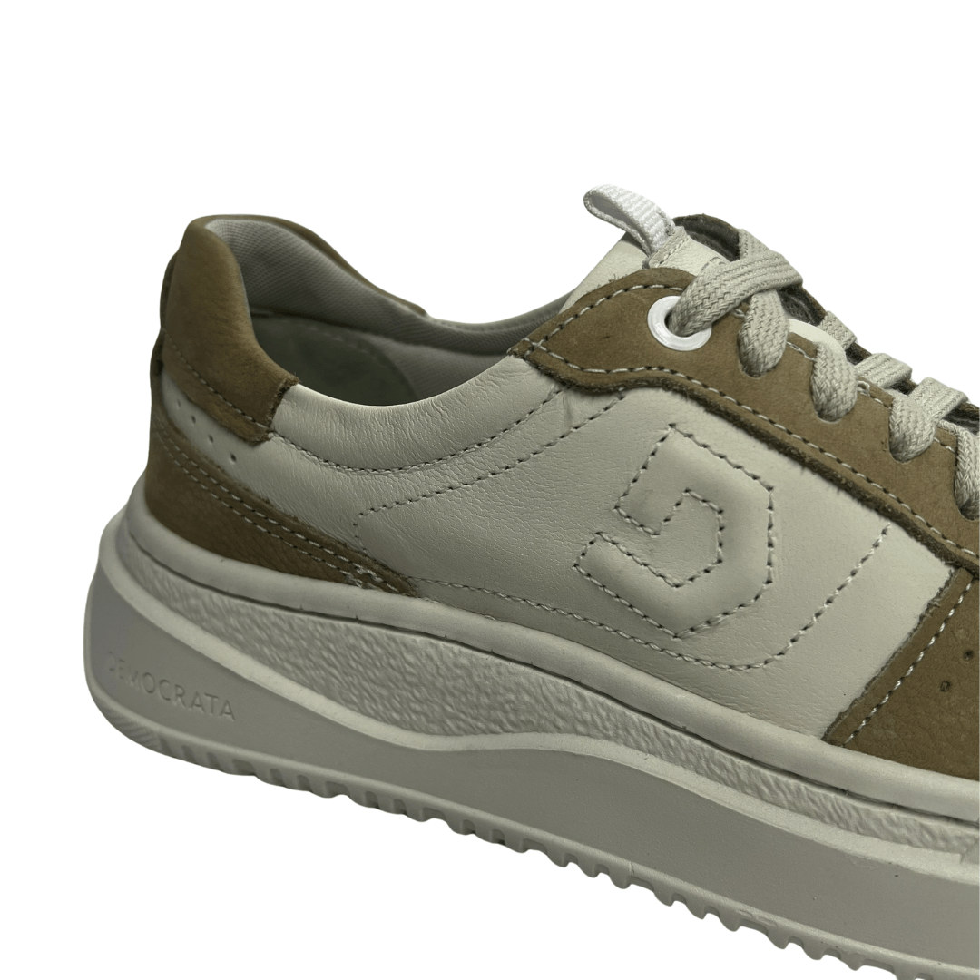 Modelo: Tênis Democrata Feminino Block Bege Off White Couro