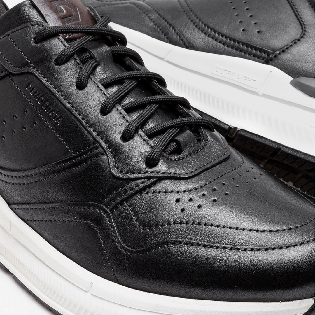 Tênis Democrata Masculino Denim Brad Ultra Light Preto Couro