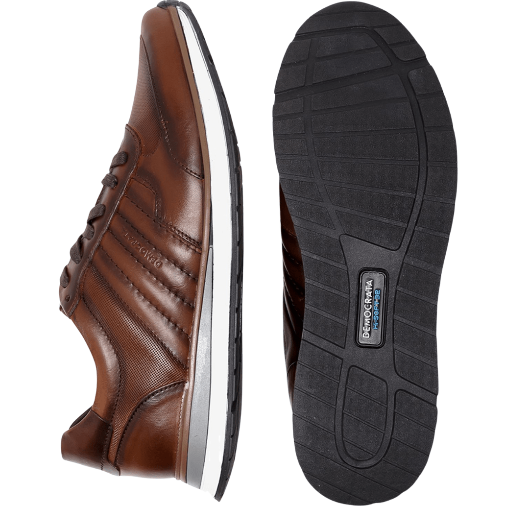 Modelo: Tênis Democrata Masculino Denim Grow Hi-Soft 32 Conhaque Couro