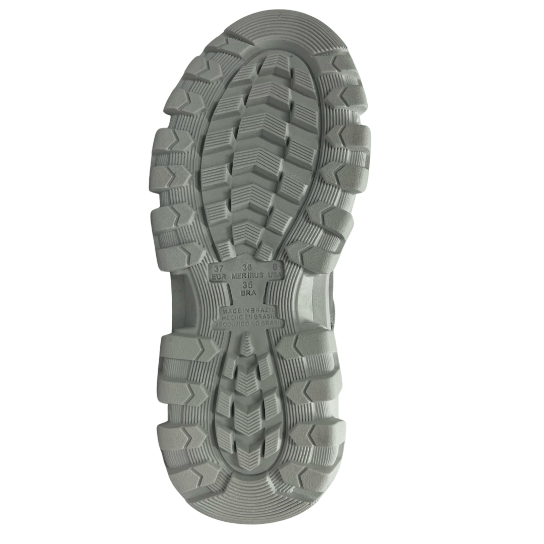 Sola: Sintética e tratorada, oferecendo segurança e estabilidade ao caminhar.