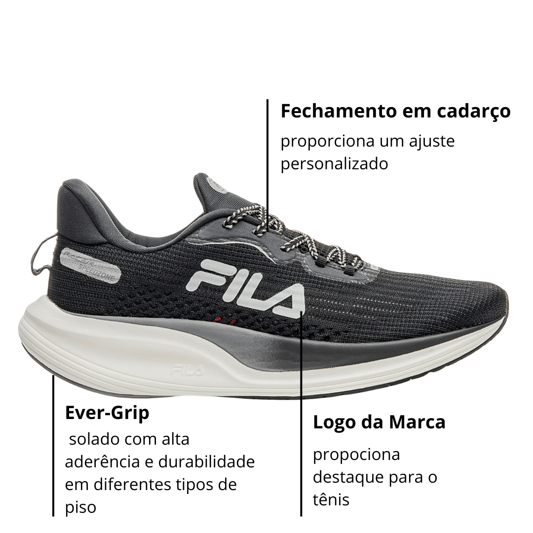 Eleve sua performance e corra com mais segurança e conforto. Garanta já o Tênis Fila Racer Speedzone Masculino e esteja pronto para superar seus limites em cada treino ou prova!