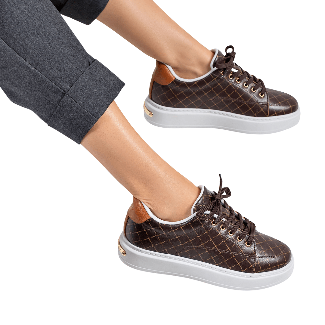 Tênis Jorge Bischoff Feminino Monograma Marrom Couro