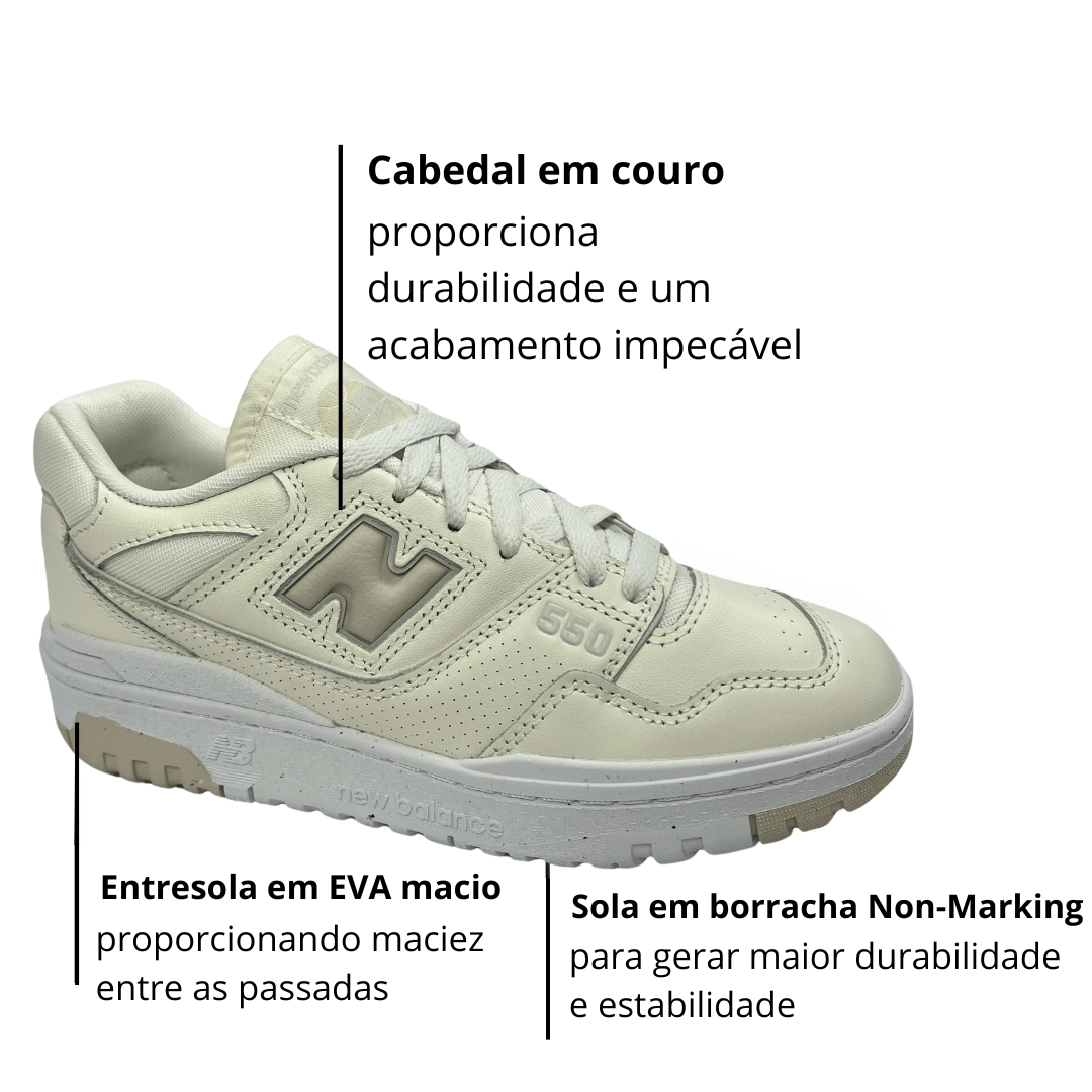 Compre já o seu Tênis New Balance Feminino 550 Bege Couro e experimente o conforto e a originalidade de um clássico reinventado!