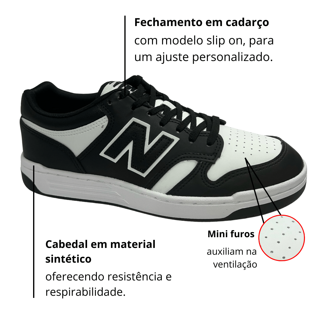 Tênis New Balance Masculino 480 Preto Branco Couro