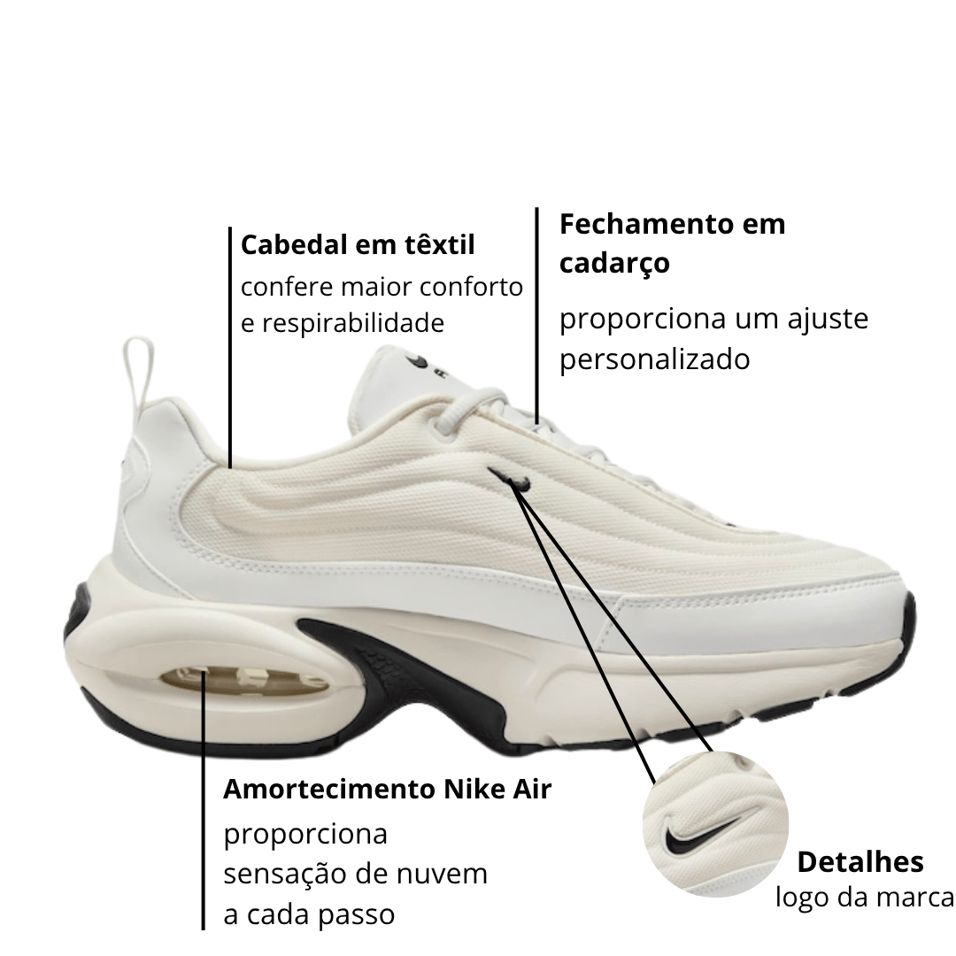 O Air Max Portal é o equilíbrio perfeito entre o estilo urbano e o conforto futurista. Com uma pegada chunky e um design minimalista, este modelo une o charme dos anos 2000 à modernidade dos dias atuais — ideal para quem gosta de tênis que se destacam em qualquer produção.