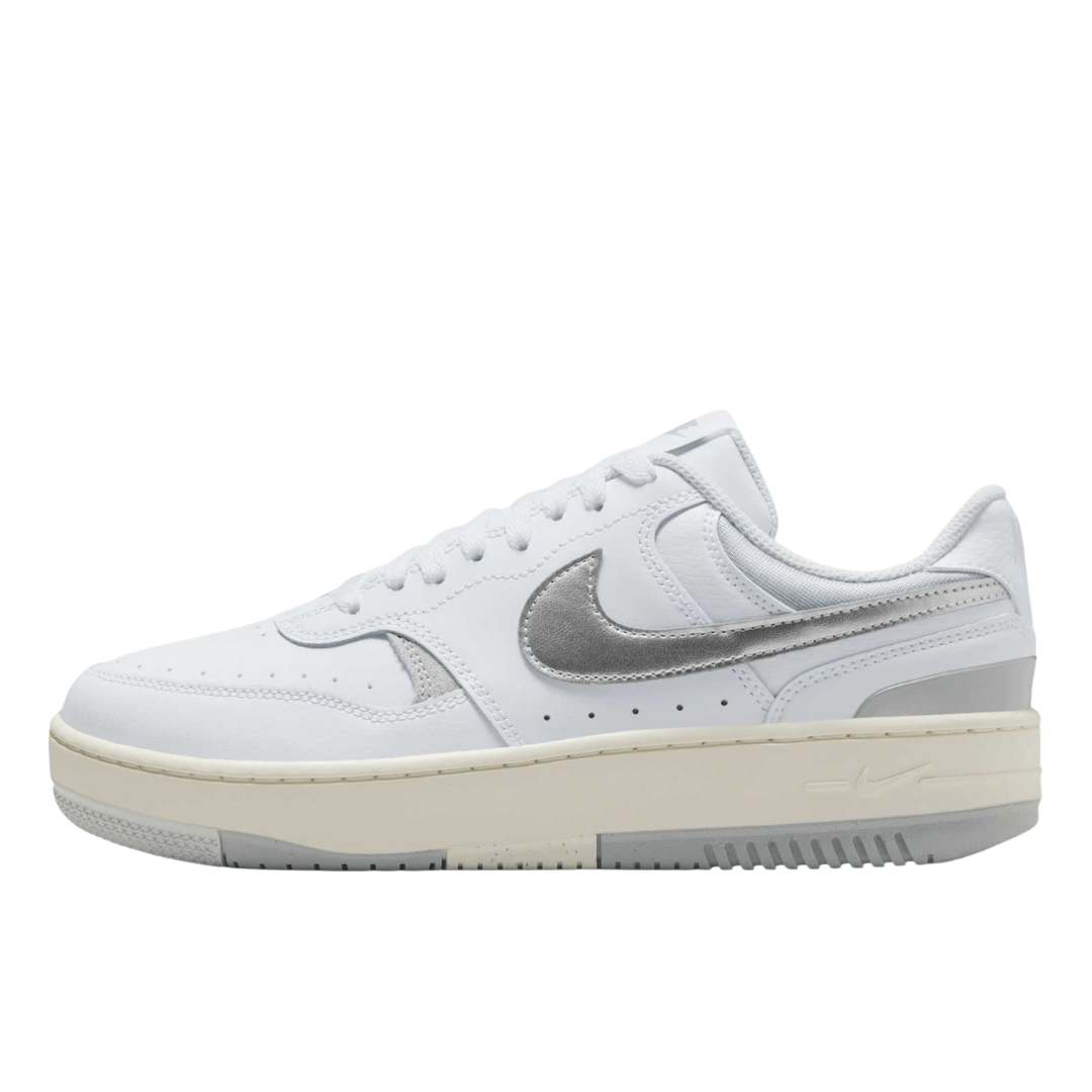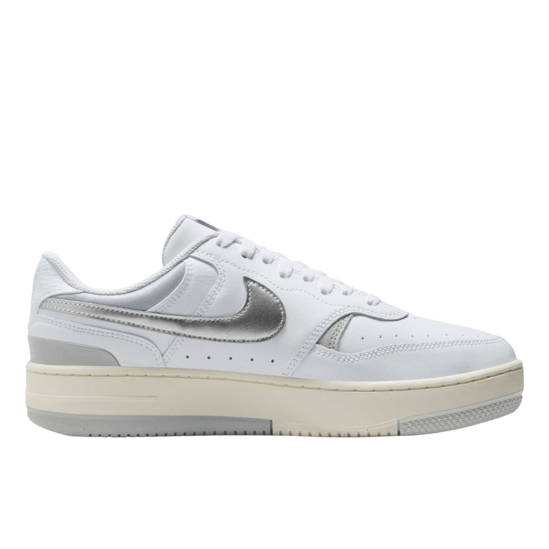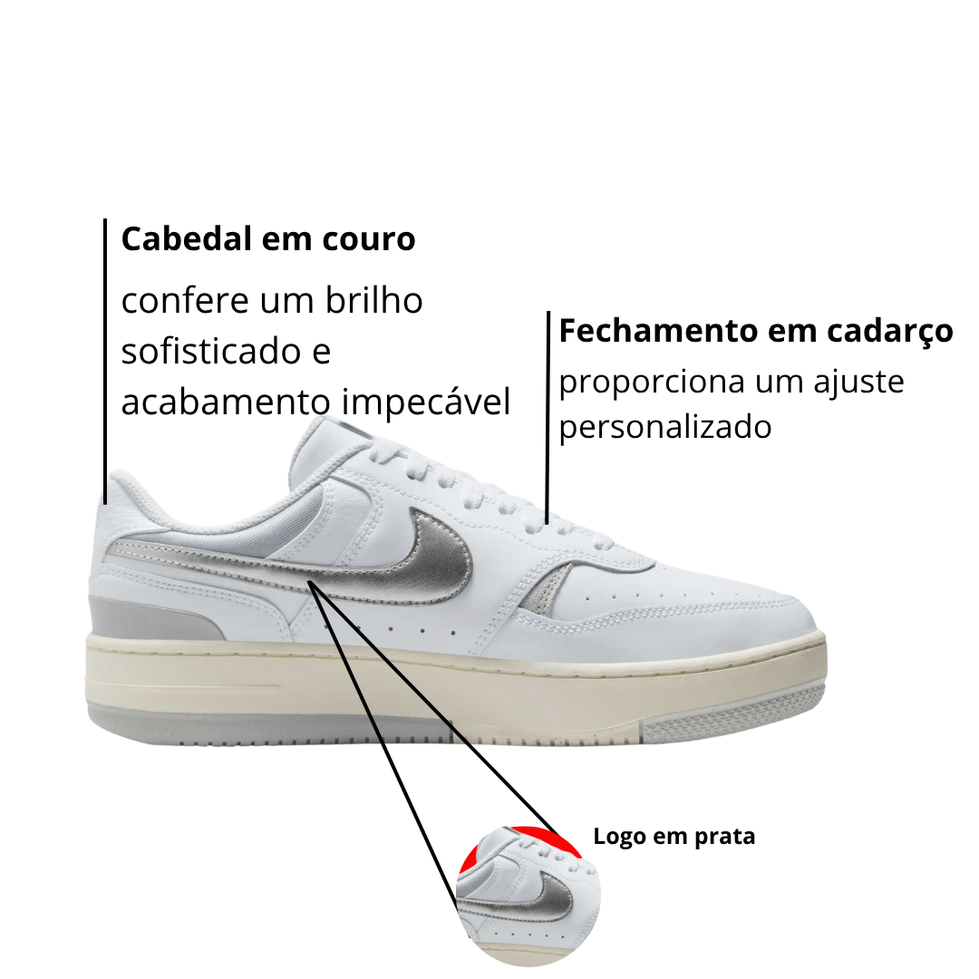 O Tênis Nike Feminino Gamma Force Branco Prata Couro é o equilíbrio perfeito entre estilo, conforto e atitude.