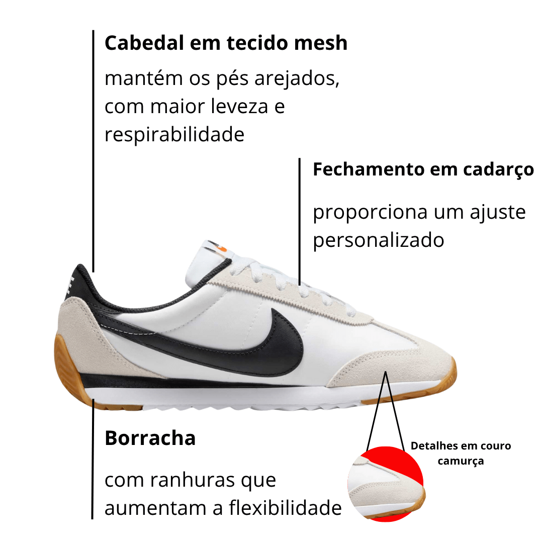 Com um charme retrô irresistível, o Nike Pacific traz o melhor dos anos 70 em uma versão moderna e cheia de personalidade. Criado para mulheres que gostam de se destacar com autenticidade, o modelo une design clássico, materiais premium e conforto absoluto — ideal para o dia a dia ou para compor looks casuais com atitude.