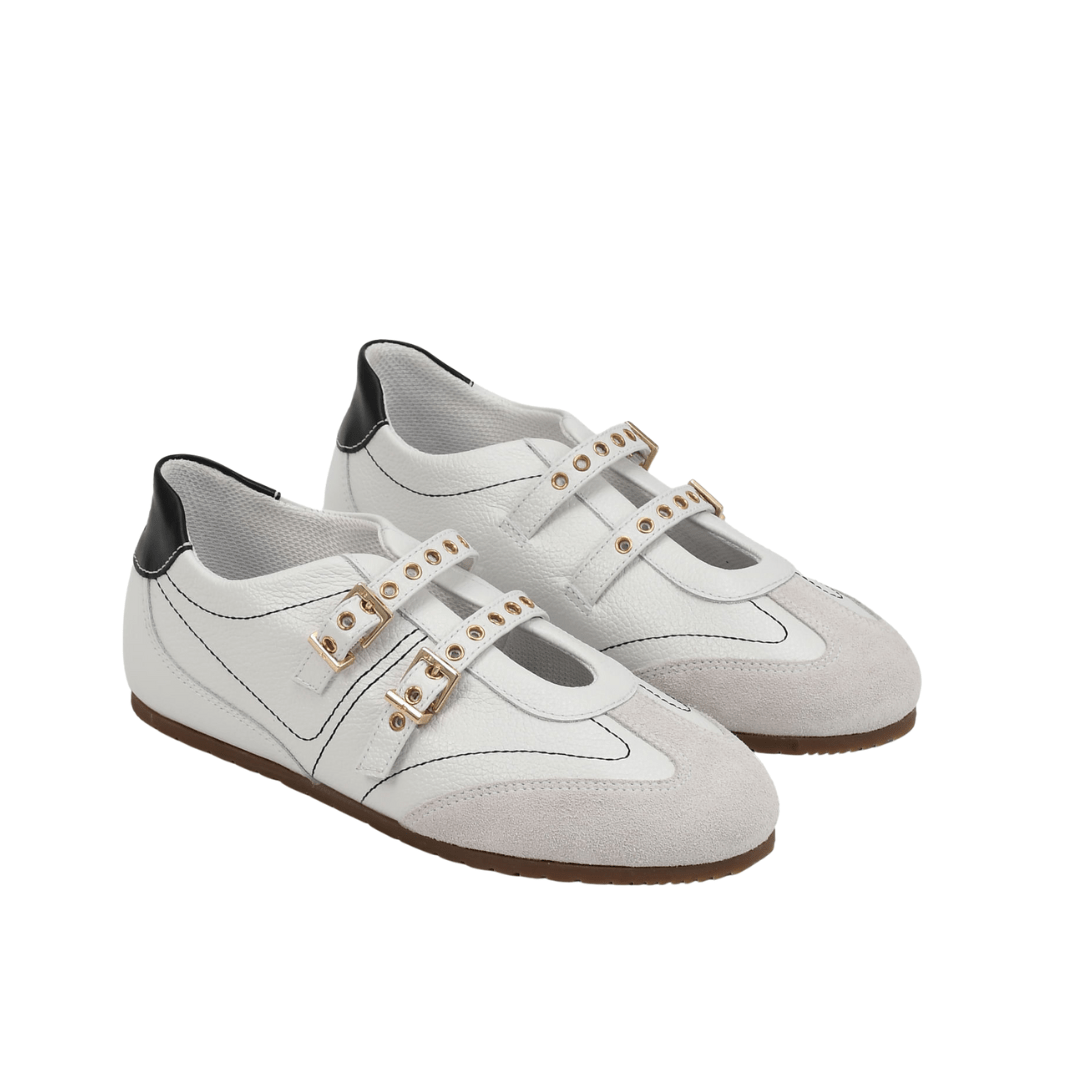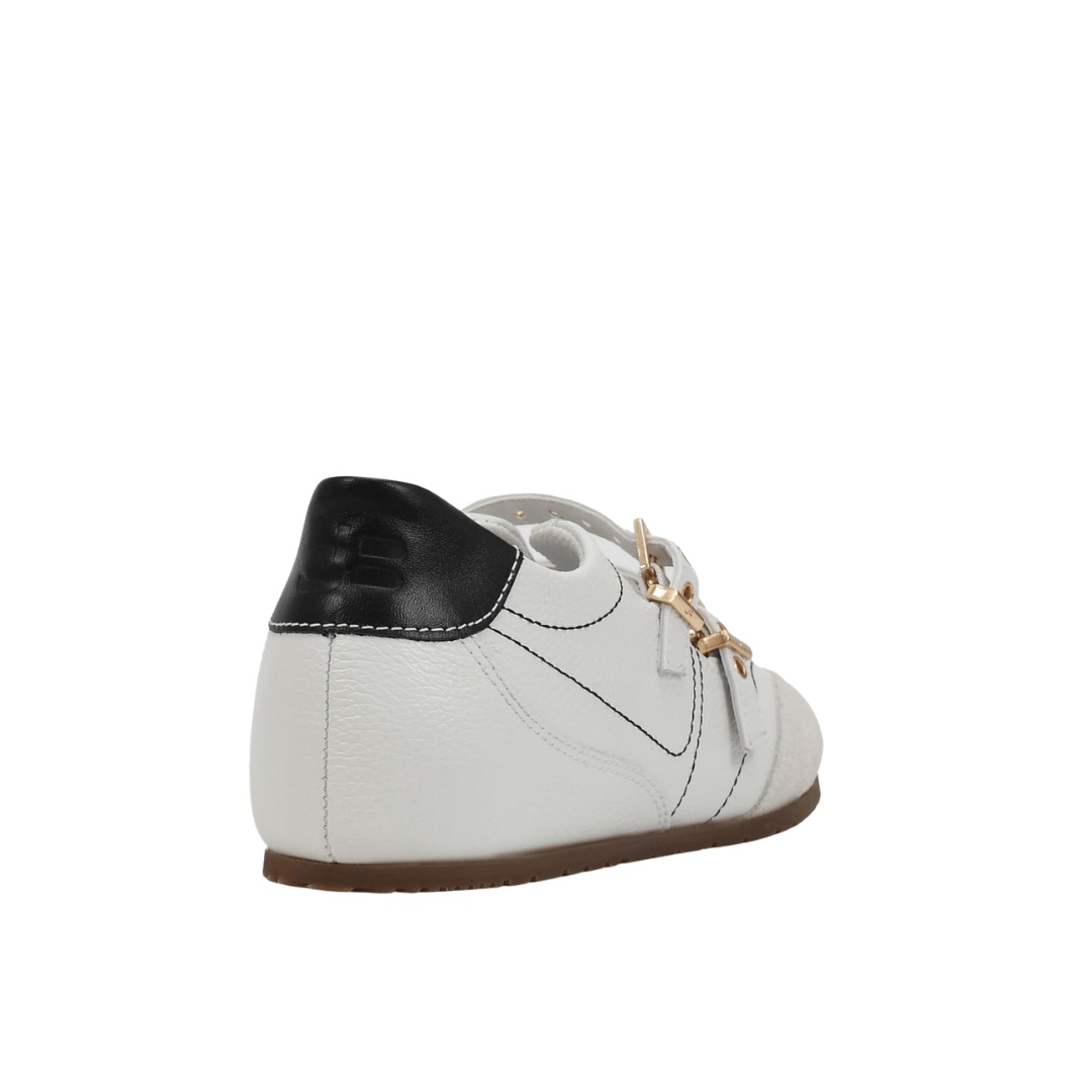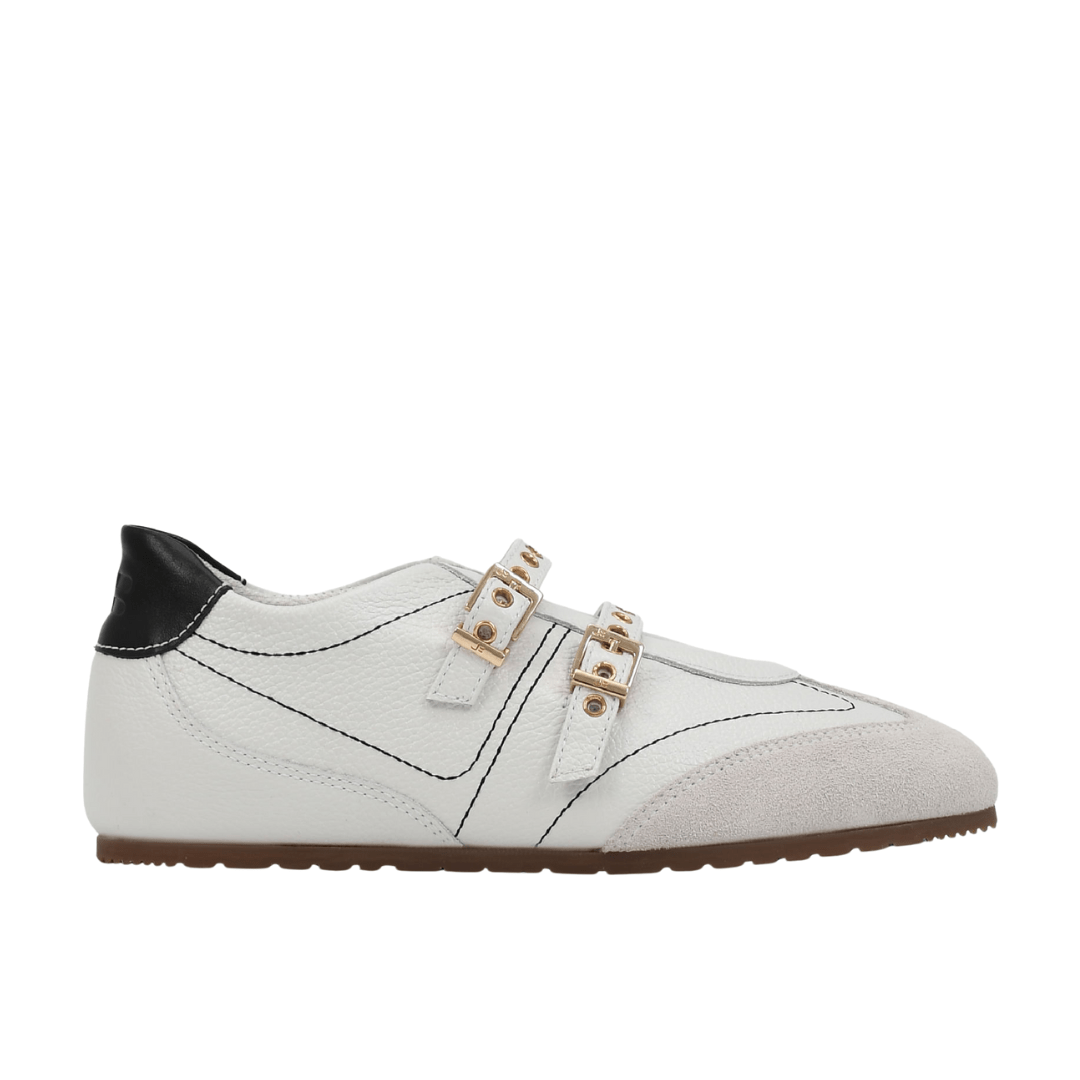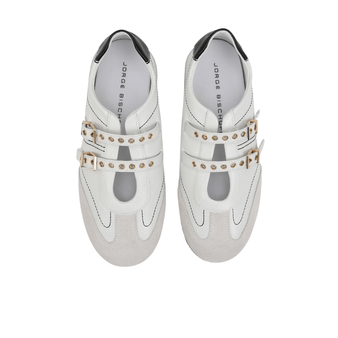 O Tênis Sapatilha Jorge Bischoff combina o melhor do conforto esportivo com o charme sofisticado do design contemporâneo. Seu visual em preto e branco traz um toque atemporal, enquanto os detalhes em camurça e metal dourado elevam o estilo de forma sutil e refinada.