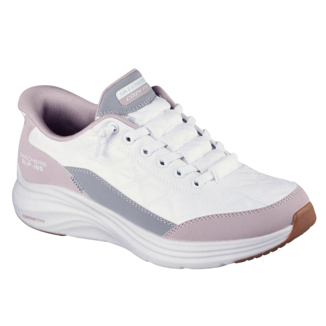 O Tênis Skechers Contour Foam Branco Lavanda é a escolha certa para quem busca leveza, conforto e estilo em um só modelo.