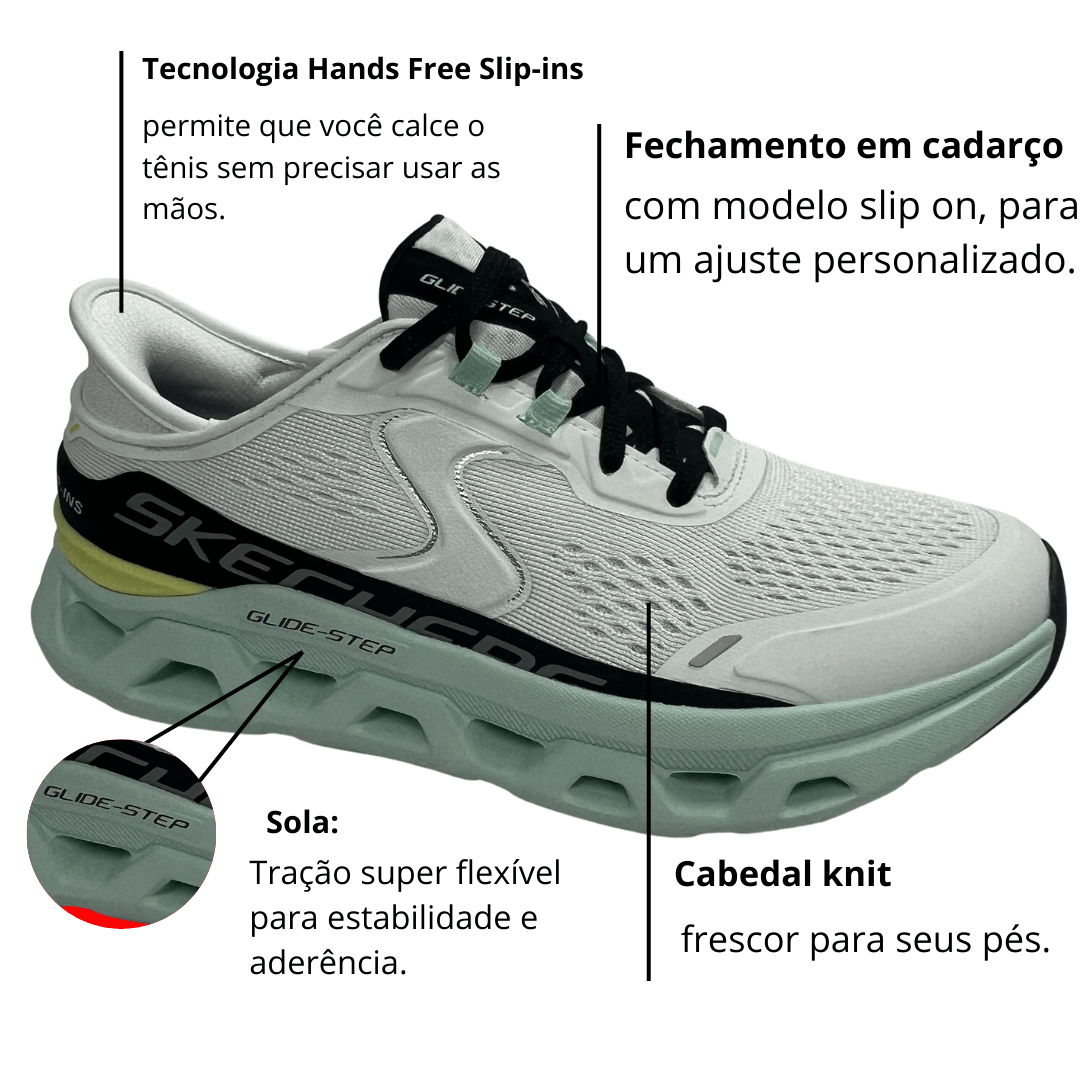 Experimente o Tênis Skechers Feminino Slip-ins Glide Step Branco Multi e sinta a diferença de um calçado que une tecnologia, conforto e praticidade no seu dia a dia!
