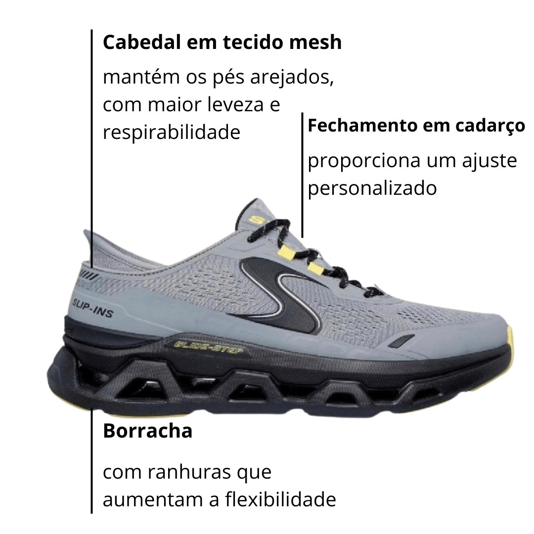 Experimente o Tênis Skechers Masculino Slip-ins Glide Step Carvão Verde Limão e sinta a diferença de um calçado que une tecnologia, conforto e praticidade no seu dia a dia!