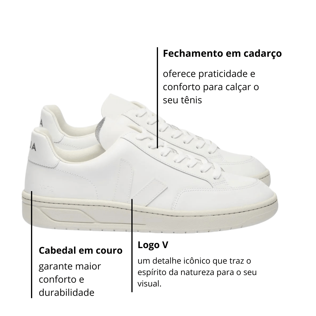 O Tênis Veja V-12 Leather Extra White é a escolha perfeita para homens que valorizam design limpo, versatilidade e propósito. Com uma pegada moderna e minimalista, ele eleva qualquer look — seja no rolê, no trabalho ou na viagem do fim de semana — e ainda mostra que você se importa com o impacto que causa no mundo.